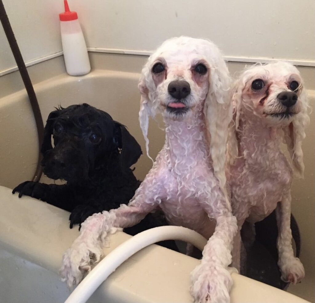 ワンちゃんもお風呂気持ちいんですねぇ…。
